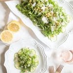 If you’re in the market for a festive appetizer or side to serve at your next summer soirée, I highly recommend taking this battle-tested beauty for a spin. It can be served on a platter (which is quite fetching) or plated individually, and it pairs nicely with pretty much anything you can think of. Better still, it’s a breeze to make. I’m talking 15 minutes total, peeps. And if the idea of raw zucchini scares you (it shouldn’t), feel free to prep the zucchini portion of the dish in advance. It will get nice and tender after a couple hours in the fridge.