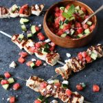 Grilled Chicken Skewers with Watermelon Salsa and Feta
