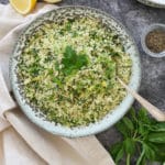Couscous, which is originally a Berber dish and a staple in many North African countries, is actually a teeny-tiny pasta made from semolina with a delightful fluffy texture. It plays well in a variety of dishes and can be seasoned in countless delicious ways, but this Lemon-Herb Couscous is a personal favorite and a staple in my side dish and #sassydesklunch rotation. Featuring the foolproof trio of extra-virgin olive oil, lemon, and fresh herbs, it’s light, fresh, and pairs perfectly with almost any protein.