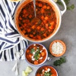 Now that I’m thinking about it, this stew sort of tastes like a deconstructed of these enchiladas but with a smoky red sauce. It’s got that glorious sweet and savory flavor combo going for it with a subtle, chipotle-induced kick. (You know I love me some chipotles in adobo.) The toppings are optional, but not really because hot DAMN. Fresh cilantro, crunchy tortilla chips (I used the Siete foods grain-free chips which I’m really into right now), and the creamy tang of goat cheese add all kinds of magic to each bowl, so I implore you to live a little.