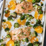 One of my favorite Serena recipes and such an easy one! Love that everything cooks on a sheet pan (makes cleaning up very easy too). The marinade/sauce here is incredibly flavorful and goes so well with the salmon and oranges and broccoli. This one makes for a great and healthy weeknight meal!