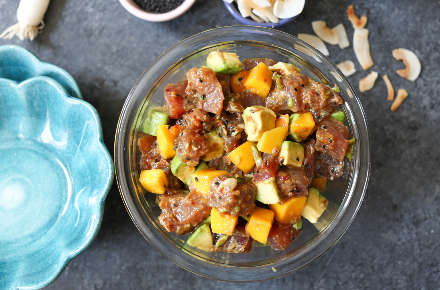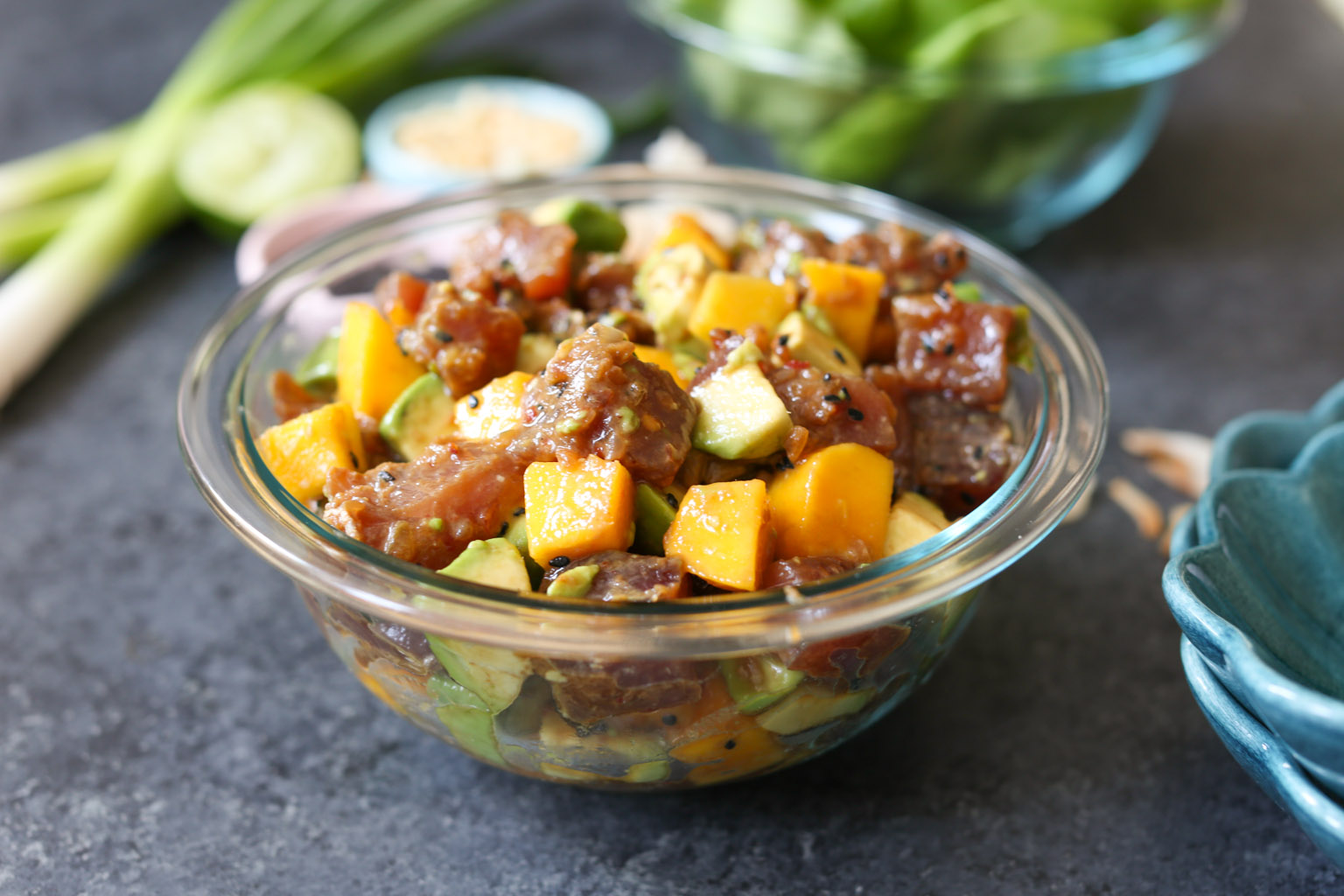 Speaking of you doing you, there are endless ways to modify this recipe. Not into getting handsy with your food? Eat it bowl-style over rice, salad or noodles. I also like the idea of serving it on rice crackers or taro chips as an appetizer/small bite for warm weather soirées. Tuna haters can easily swap ahi for salmon, snapper, and even tofu. You can also play with your fruit choice—pineapple, orange, or grapefruit would all be great subs for mango. Honestly, you can’t really go wrong.