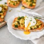 - Assembly the toasts: Spread each piece of toast with a thick layer of sun-dried tomato white bean spread. Top with cooked squash and an egg. Garnish with chives and extra salt and fresh ground pepper if you like, and serve immediately.