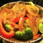 This week’s most successful dude diet dish: chicken and vegetables with brown rice vermicelli in ginger-soy broth.