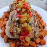Pork Chops with Grilled Pineapple Salsa and Spiced Sweet Potatoes